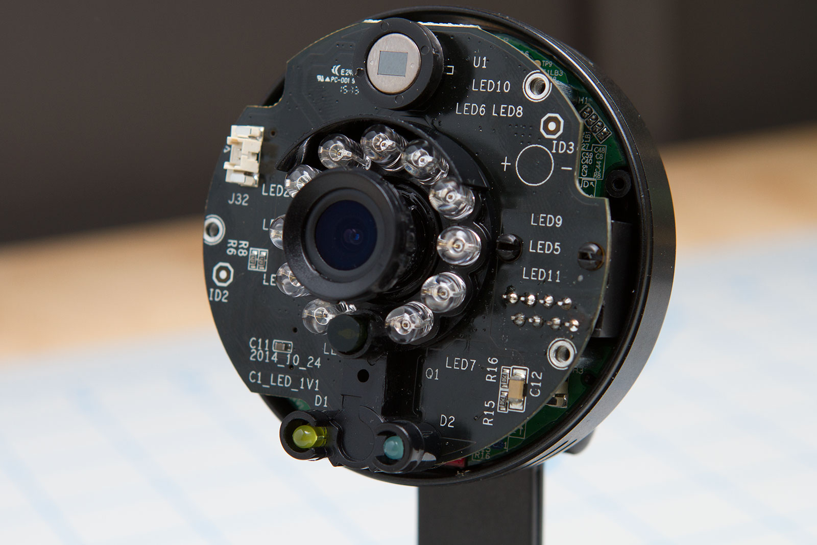 Besides that, we’ve got a nice ring of IR LEDs and an ambient light sensor at the bottom of the ring. There’s also a hookup for the microphone, which is mounted in the front cover.